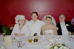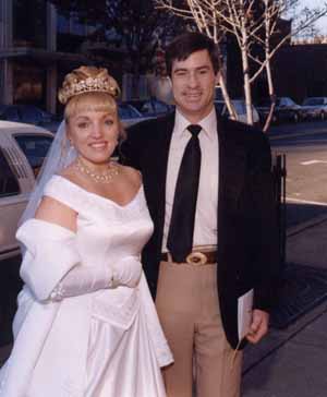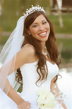 Hello Again Tiara Town! I was fortunate to find everything for my entire wedding party 5 years ago when I got married. Even my flower girls wore Tiara Town tiaras! Everyone looked like a princess! I am also including a few pictures of me wearing my Tiara Town Audrey Hepburn Replica tiara at my wedding. I was so excited when I found my tiara on your web site. It is one of those 'oh my God! THAT'S THE ONE!!!' gut feeling when I saw it! I actually cried when I saw it on your web page and again when I put it on for the very first time and saw myself in the mirror. I really felt like Cinderella going to the ball to marry my prince. In fact,I had Cinderella & Prince Charming on my wedding invitations,place cards and on the engraved napkins! You helped my dream of the perfect romantic fantasy wedding come true!